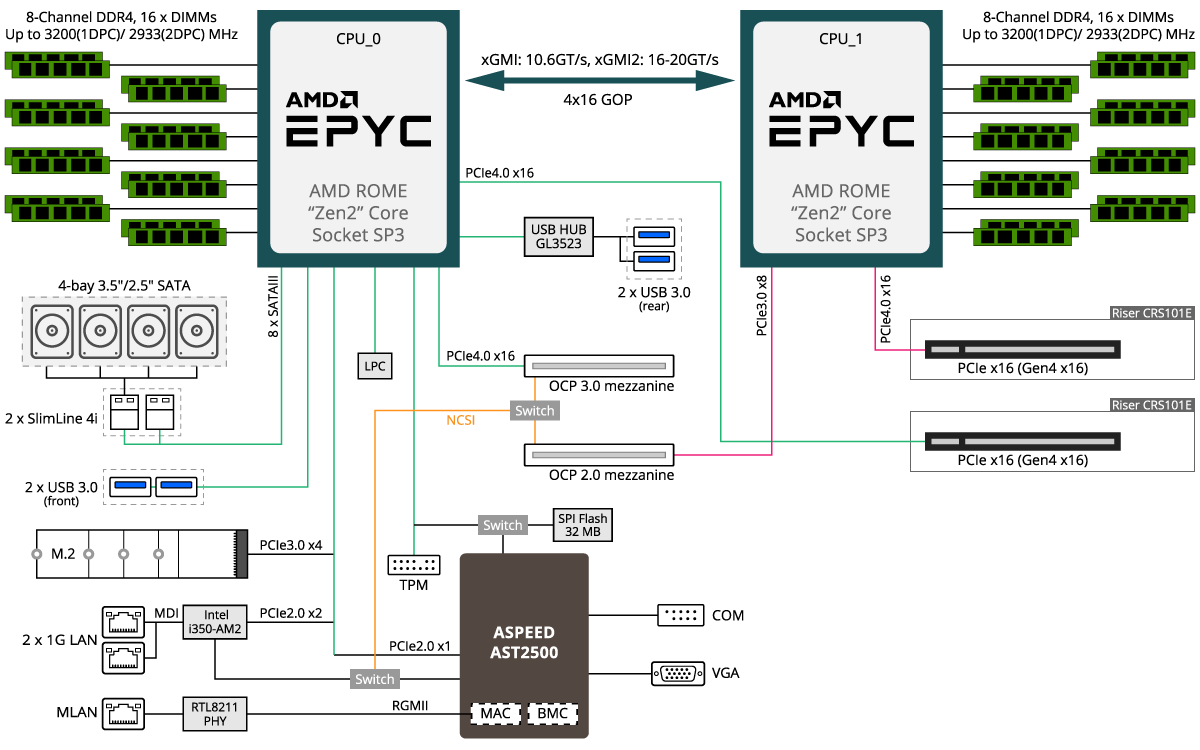 | Compatible CPU(s) | AMD EPYC 7002 Series (Rome) - Up to 64-core, 128 threads per processor |