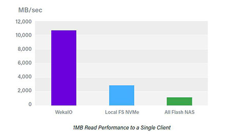 WekaFS is ideally suited for performance-intensive workloads such as artificial intelligence, deep learning, data analytics, life sciences research, financial modeling, log management, engineering development, media rendering, and government/university research.Better Than Local File System Performance